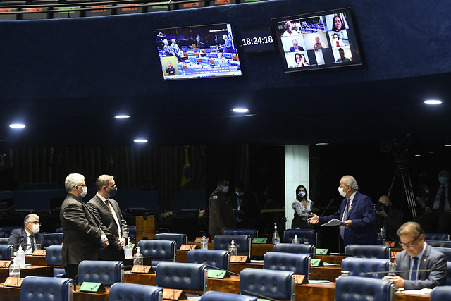 Plenário do Senado Federal durante sessão deliberativa ordinária semipresencial.