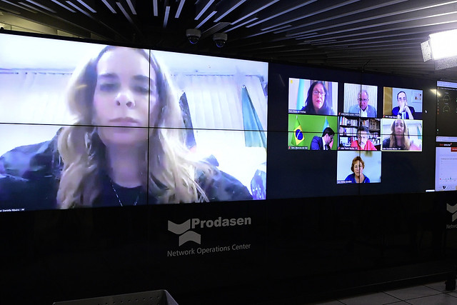 Sessão Deliberativa Remota (SDR) do Senado Federal realizada a partir da sala de controle da Secretaria de Tecnologia da Informação (Prodasen).