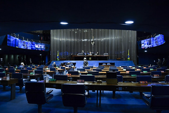 Plenário do Senado Federal durante sessão deliberativa ordinária semipresencial.