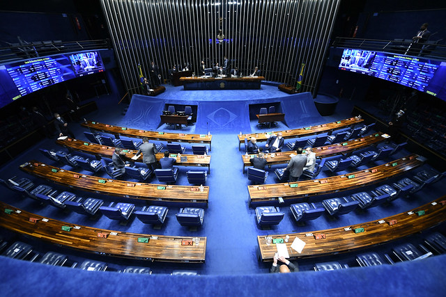 Plenário do Senado Federal durante sessão deliberativa extraordinária semipresencial.