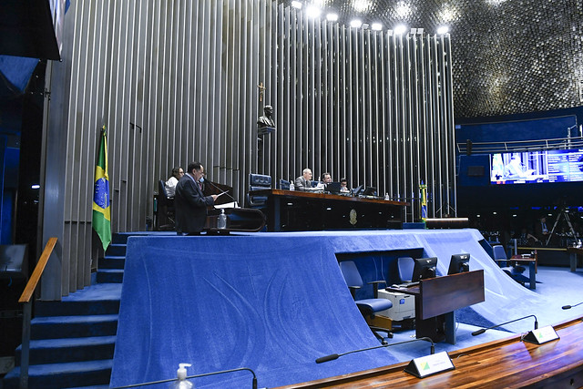 Plenário do Senado Federal durante sessão deliberativa ordinária semipresencial.