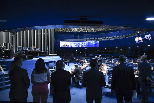Plenário do Senado Federal durante sessão deliberativa ordinária semipresencial.