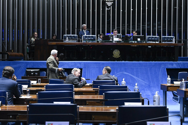 Plenário do Senado Federal durante sessão deliberativa ordinária semipresencial.