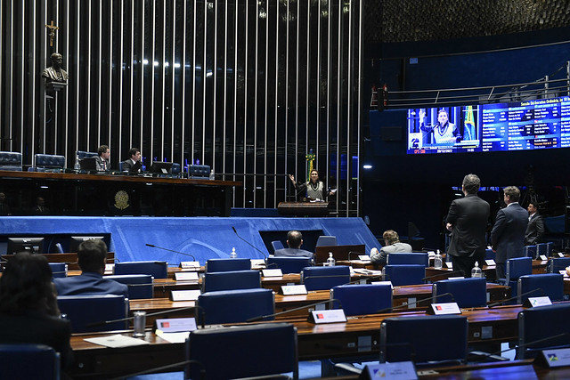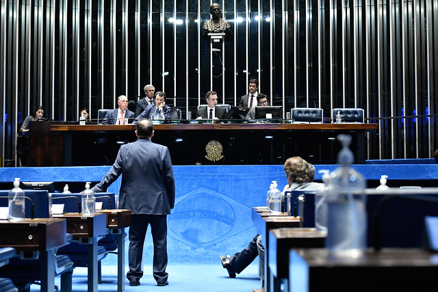 Plenário do Senado Federal durante sessão deliberativa ordinária semipresencial. Ordem do dia.