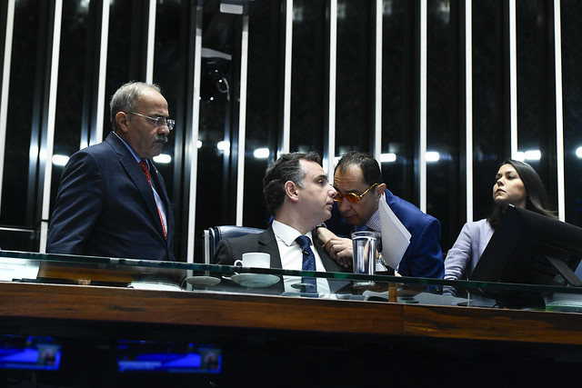 Presidente do Senado Federal realiza reunião de líderes para tratar da atividade legislativa.