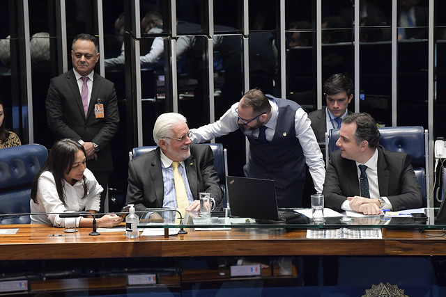 Plenário do Senado Federal durante sessão deliberativa extraordinária semipresencial.