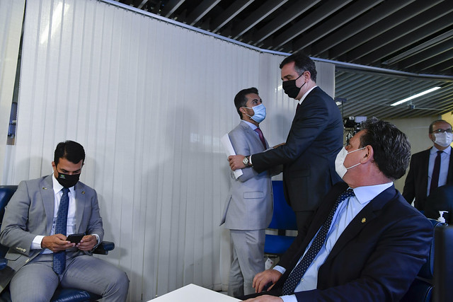 Sessão Deliberativa Remota (SDR) do Senado Federal realizada a partir da sala de controle da Secretaria de Tecnologia da Informação (Prodasen).