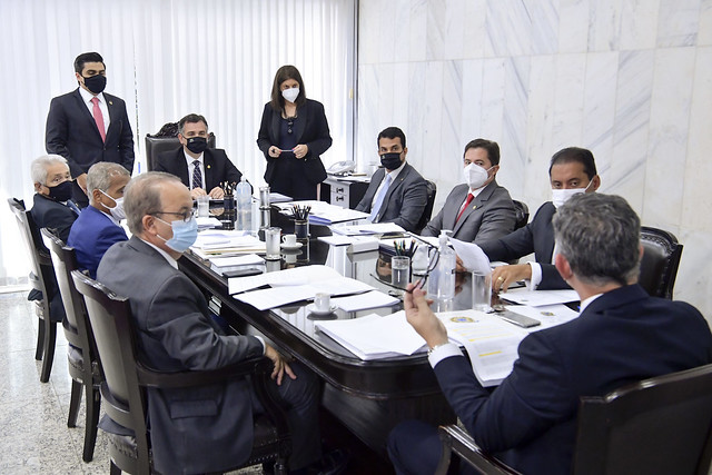 Presidente do Senado, senador Rodrigo Pacheco (DEM-MG), conduz reunião da Comissão Diretora do Senado Federal.