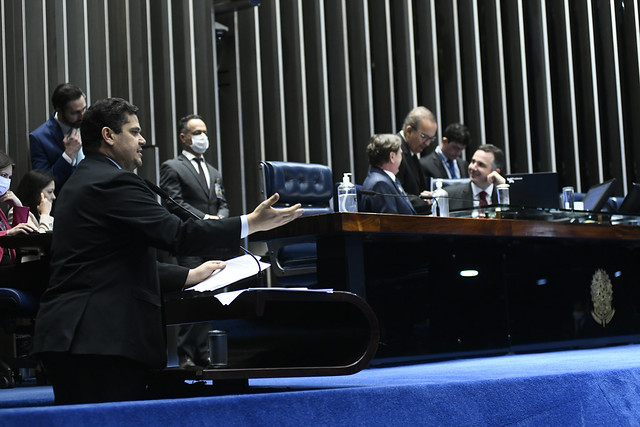 Plenário do Senado Federal durante sessão deliberativa extraordinária semipresencial.