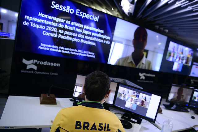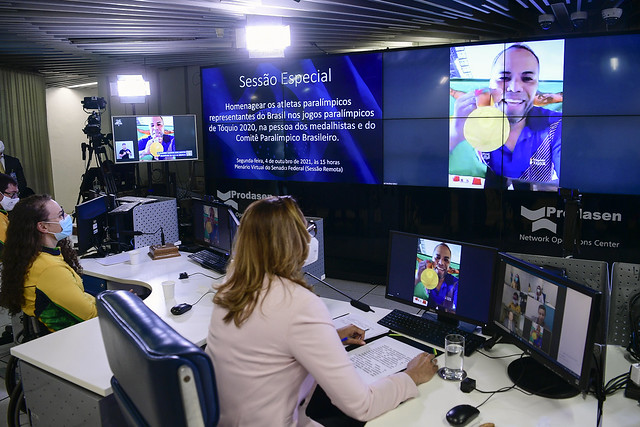 Sessão especial remota, realizada a partir da sala de controle da Secretaria de Tecnologia da Informação (Prodasen), destinada a homenagear os atletas paralímpicos representantes do Brasil nos jogos paralímpicos de Tóquio 2020, na pessoa dos medalhistas e do Comitê Paralímpico Brasileiro.