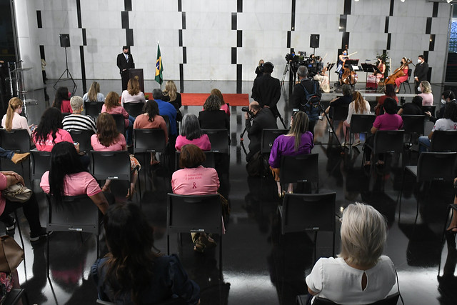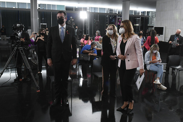 A Procuradoria Especial da Mulher do Senado Federal, em parceria com a Secretaria da Mulher da Câmara dos Deputados, realiza cerimônia de abertura do Outubro Rosa no Congresso Nacional.