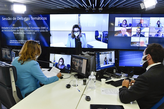 Sessão de debates temáticos, realizada a partir da sala de controle da Secretaria de Tecnologia da Informação (Prodasen), destinada a debater o Sistema Nacional de Fomento (SNF) e as necessidades de financiamento para saída da Pandemia da Covid-19.