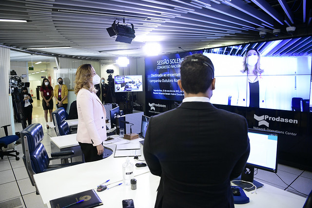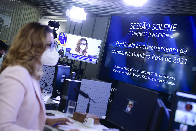 Sessão solene remota do Congreso Nacional, realizada a partir da sala de controle da Secretaria de Tecnologia da Informação (Prodasen), destinada ao encerramento da campanha Outubro Rosa de 2021.