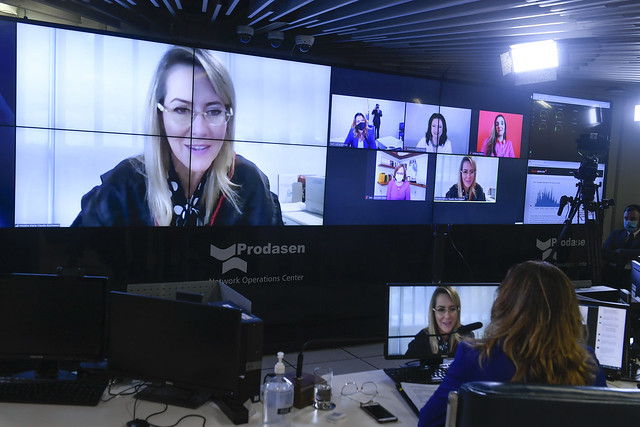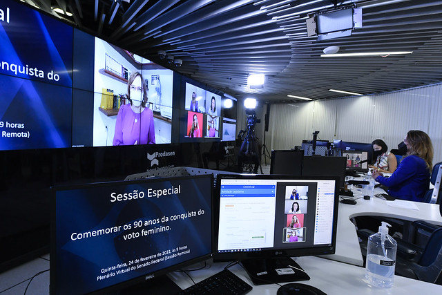 Sessão especial remota, realizada a partir da sala de controle da Secretaria de Tecnologia da Informação (Prodasen), destinada a comemorar os 90 anos da conquista do voto feminino.