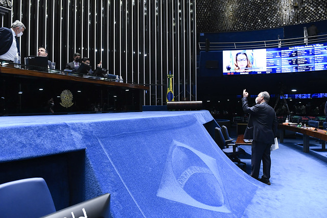 Plenário do Senado Federal durante sessão deliberativa ordinária semipresencial.