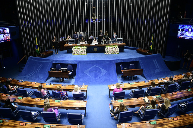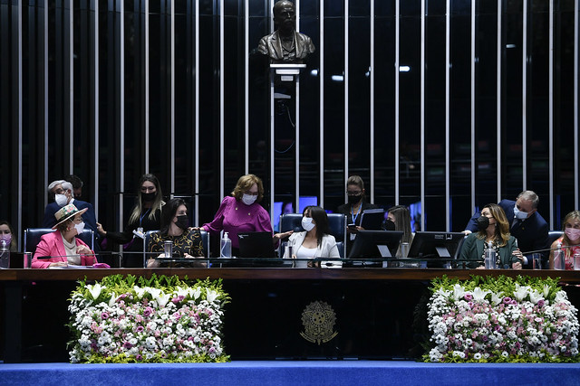 Plenário do Senado Federal durante sessão solene semipresencial do Congresso Nacional destinada a comemorar o Dia Internacional da Mulher.