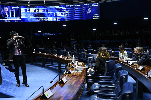 Plenário do Senado Federal durante sessão deliberativa extraordinária semipresencial.