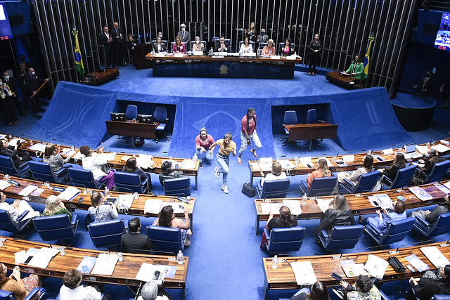 Plenário do Senado Federal durante sessão especial semipresencial.