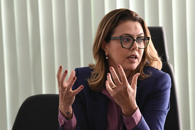 Senadora Leila Barros (PDT-DF) concede entrevista coletiva e fala sobre os impactos da Lei Geral do Esporte.