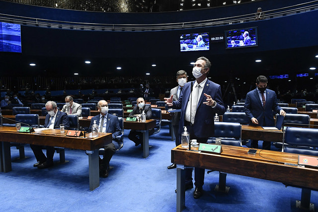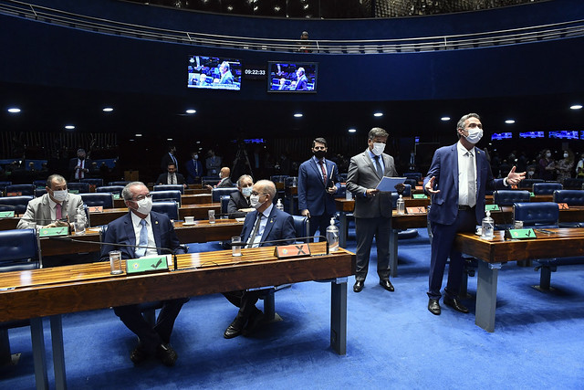 Plenário do Senado Federal durante sessão deliberativa extraordinária semipresencial.