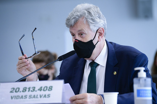 Comissão Parlamentar de Inquérito da Pandemia (CPIPANDEMIA) realiza oitiva de integrante do Conselho Nacional de Secretarias Municipais de Saúde (Conasems). O objetivo é esclarecer se houve algum tipo de pressão ou interferência do governo na decisão tomada pela Comissão Nacional de Incorporação de Tecnologias do Sistema Único de Saúde (Conitec) de adiar a análise de um estudo sobre o tratamento medicamentoso ambulatorial de pacientes com covid-19.