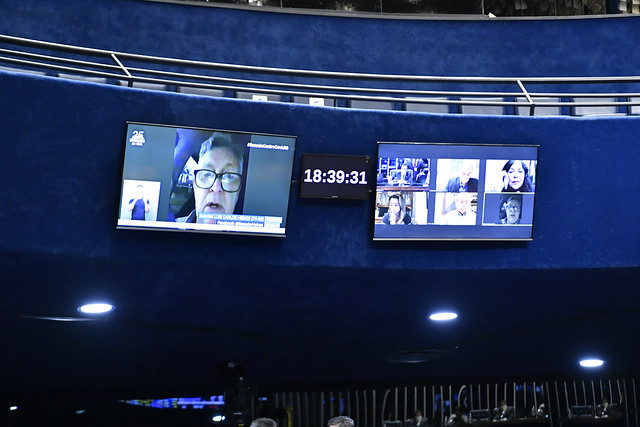 Plenário do Senado Federal durante sessão deliberativa ordinária semipresencial.