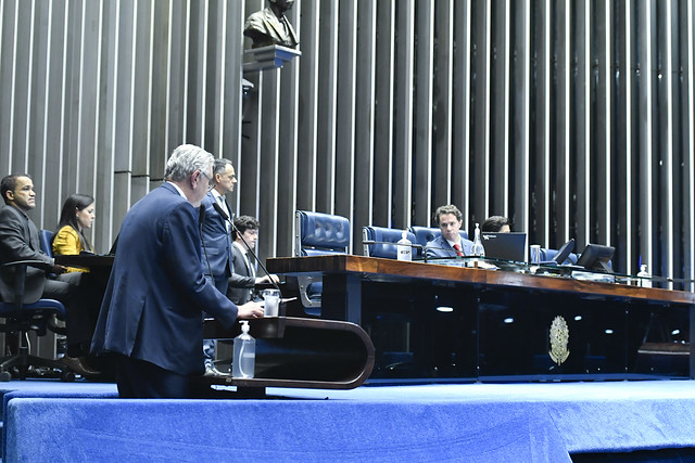 Plenário do Senado Federal durante sessão deliberativa ordinária semipresencial.