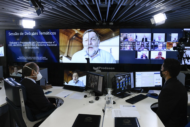 Sessão de debates temáticos, realizada a partir da sala de controle da Secretaria de Tecnologia da Informação (Prodasen), destinada a debater o Projeto de Lei Complementar (PLP) 235/2019, que institui o Sistema Nacional de Educação (SNE).