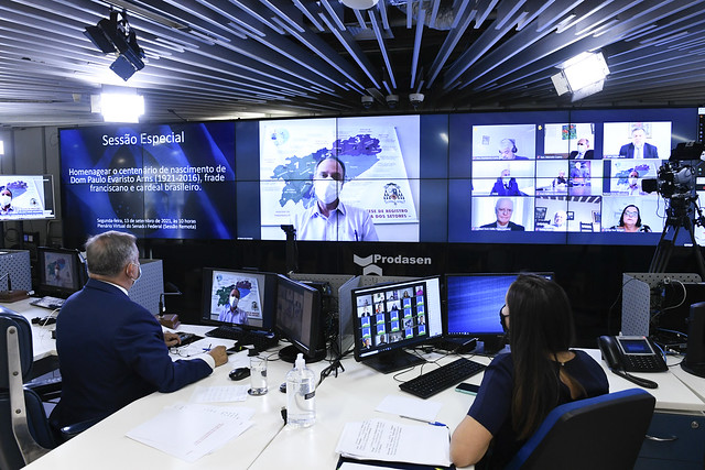 Sessão especial remota, realizada a partir da sala de controle da Secretaria de Tecnologia da Informação (Prodasen), destinada a homenagear o centenário de nascimento de Dom Paulo Evaristo Arns (1921-2016), frade franciscano e cardeal brasileiro.