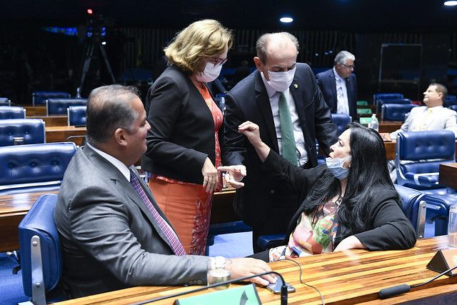 Plenário do Senado Federal durante sessão deliberativa extraordinária semipresencial.