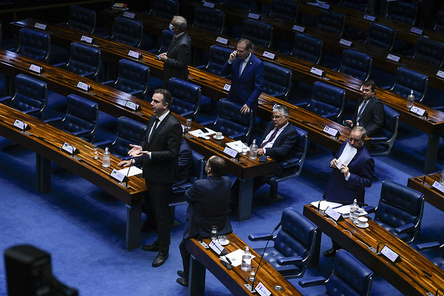 Plenário do Senado Federal durante sessão deliberativa ordinária semipresencial. Ordem do dia.