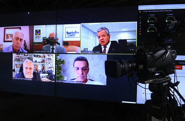 Sessão Deliberativa Remota (SDR) do Senado Federal realizada a partir da sala de controle da Secretaria de Tecnologia da Informação (Prodasen).