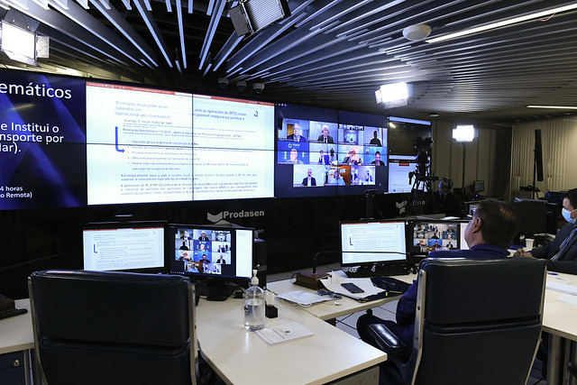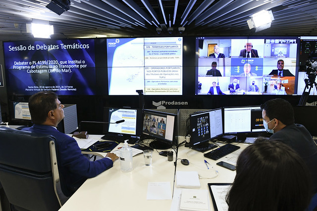 Sessão de debates temáticos, realizada a partir da sala de controle da Secretaria de Tecnologia da Informação (Prodasen), destinada a debater o PL 4199/2020, que Institui o Programa de Estímulo ao Transporte por Cabotagem (BR do Mar).