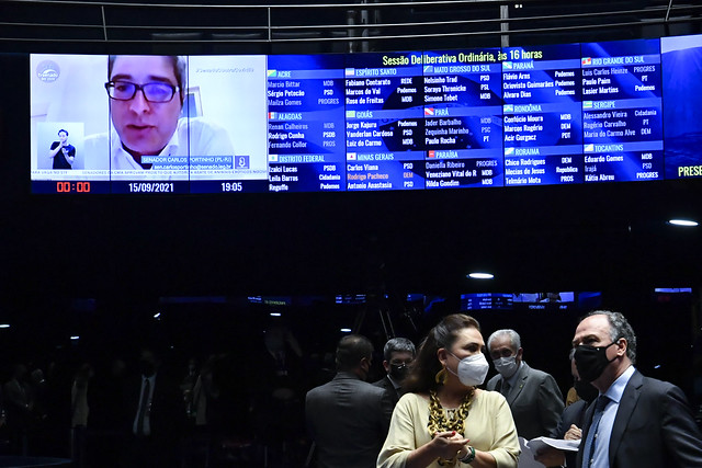 Plenário do Senado Federal durante sessão deliberativa ordinária semipresencial.