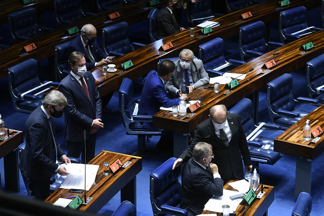 Plenário do Senado Federal durante sessão deliberativa extraordinária semipresencial.