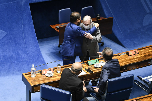 Plenário do Senado Federal durante sessão deliberativa ordinária semipresencial.