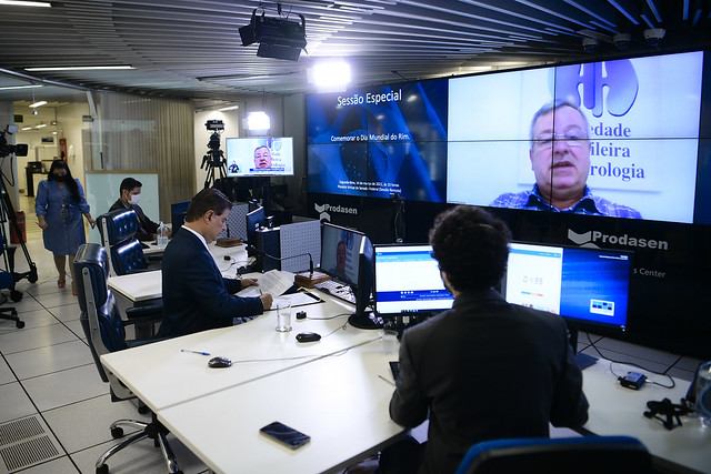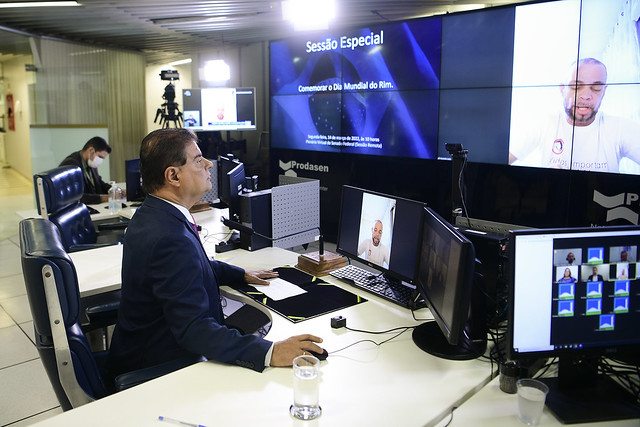 Sessão especial remota, realizada a partir da sala de controle da Secretaria de Tecnologia da Informação (Prodasen), destinada a celebrar o Dia Mundial do Rim.
