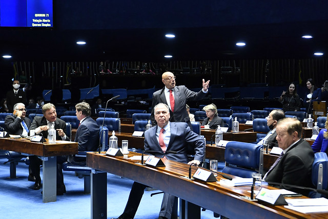 Plenário do Senado Federal durante sessão deliberativa ordinária semipresencial.