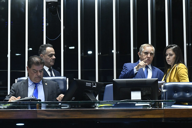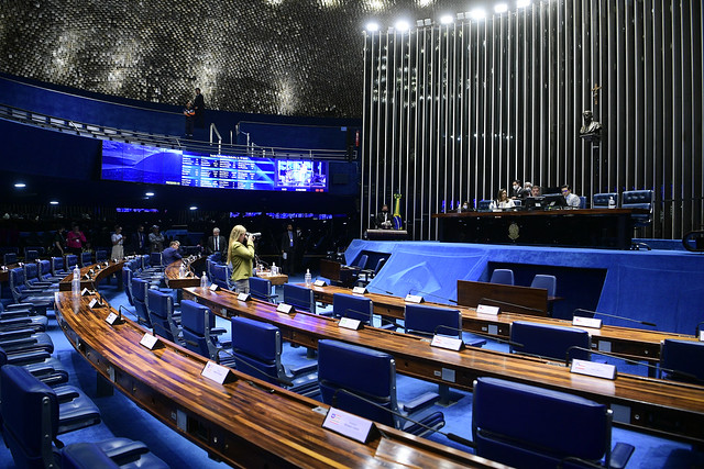 Plenário do Senado Federal durante sessão deliberativa ordinária semipresencial.