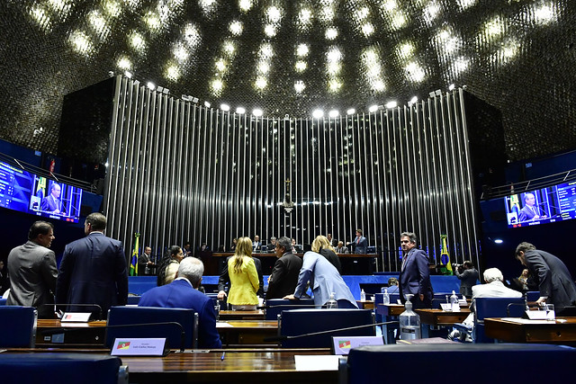 Plenário do Senado Federal durante sessão deliberativa ordinária destinada à deliberação de autoridades sabatinadas pela Comissão de Assuntos Econômicos (CAE) e pela Comissão de Serviços de Infraestrutura (CI). Também está na ordem do dia o PLP 41/2019, que define mecanismos de avaliação e revisão dos incentivos e benefícios fiscais.
