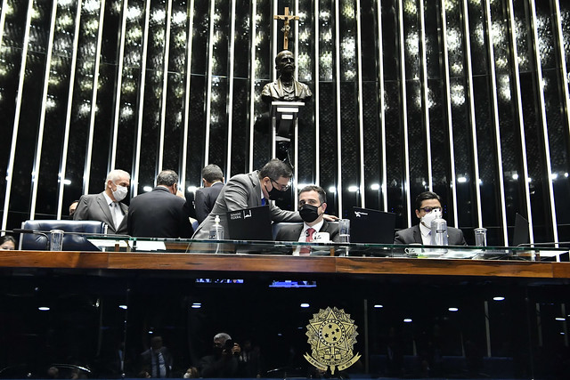 Plenário do Senado Federal durante sessão deliberativa ordinária semipresencial.