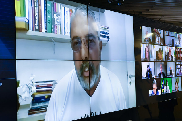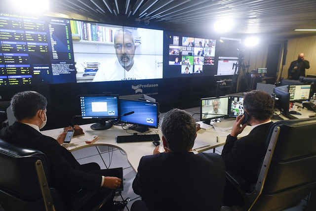 Sessão Deliberativa Remota (SDR) do Senado Federal realizada a partir da sala de controle da Secretaria de Tecnologia da Informação (Prodasen).