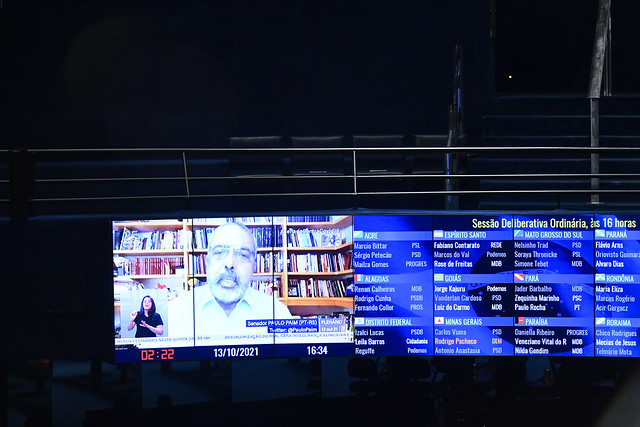 Plenário do Senado Federal durante sessão deliberativa ordinária semipresencial. Ordem do dia.