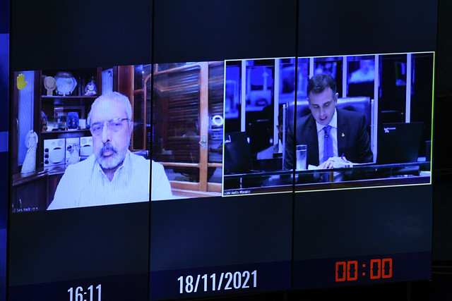 Plenário do Senado Federal durante sessão deliberativa ordinária semipresencial.