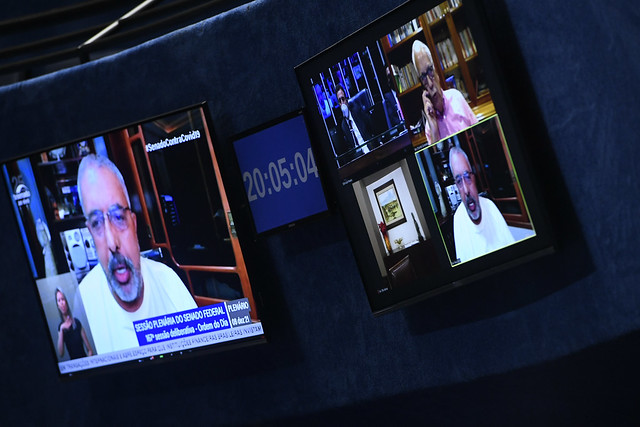 Plenário do Senado Federal durante sessão solene semipresencial do Congresso Nacional destinada à promulgação da Emenda Constitucional n° 113, de 2021, que altera os arts. 100, 160 e 167 da Constituição Federal e o Ato das Disposições Constitucionais Transitórias para estabelecer o novo regime de pagamentos de precatórios, modificar normas relativas ao Novo Regime Fiscal e autorizar o parcelamento de débitos previdenciários dos Municípios, e dá outras providências.