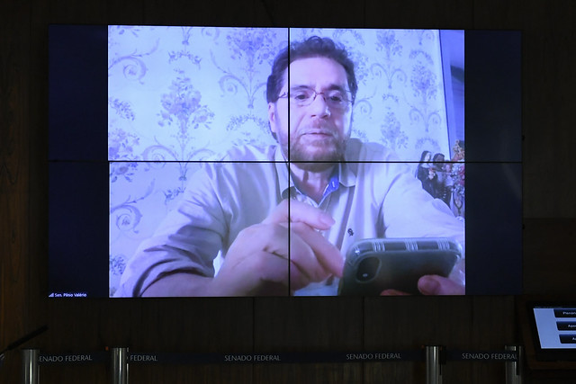 No painel, senador Plínio Valério (PSDB-AM) em pronunciamento via videoconferência.