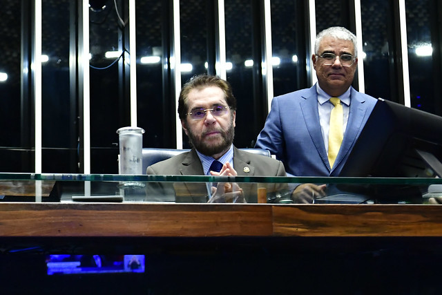 À mesa, senador Plínio Valério (PSDB-AM) preside sessão.