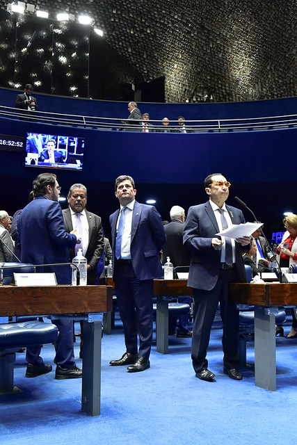 Plenário do Senado Federal durante sessão deliberativa ordinária destinada à deliberação de autoridades sabatinadas pela Comissão de Assuntos Econômicos (CAE) e pela Comissão de Serviços de Infraestrutura (CI). Também está na ordem do dia o PLP 41/2019, que define mecanismos de avaliação e revisão dos incentivos e benefícios fiscais.