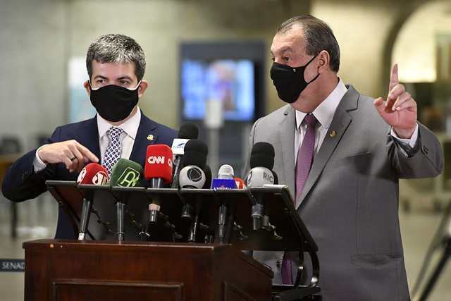 Membros da Comissão Parlamentar de Inquérito da Pandemia (CPIPANDEMIA) concedem entrevista coletiva, após 2ª reunião da comissão.
