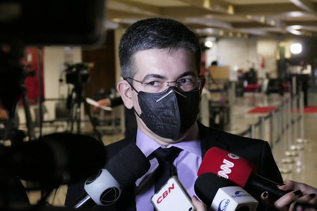 Senadores conversam com a imprensa sobre os trabalhos da CPI da Pandemia. Nesta terça-feira (10), os senadores da CPI ouvem o depoimento do presidente do Instituto Força Brasil.